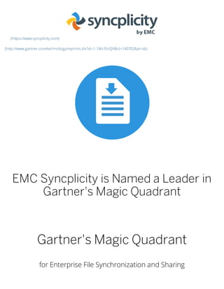Read this magic quadrant for efss report by gartner to see how the efss vendors, including box shown as a leader in the magic quadrant, are increasingly addressing digital workplace. The gartner magic quadrant for enterprise file synchronization and sharing is available from gartner as well as from some of the mentioned vendors including syncplicity,.